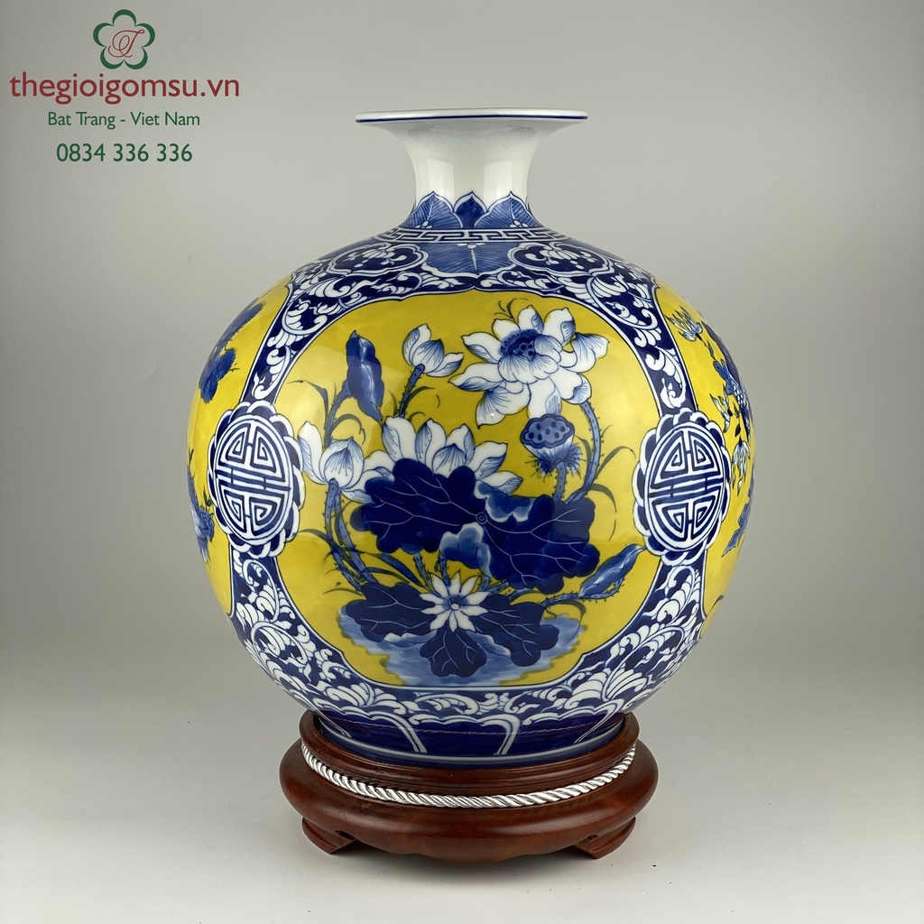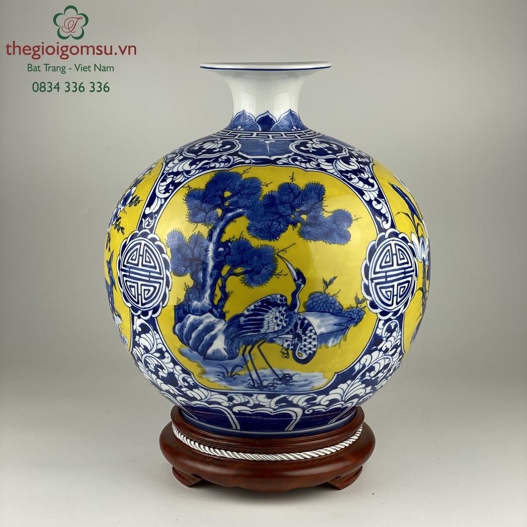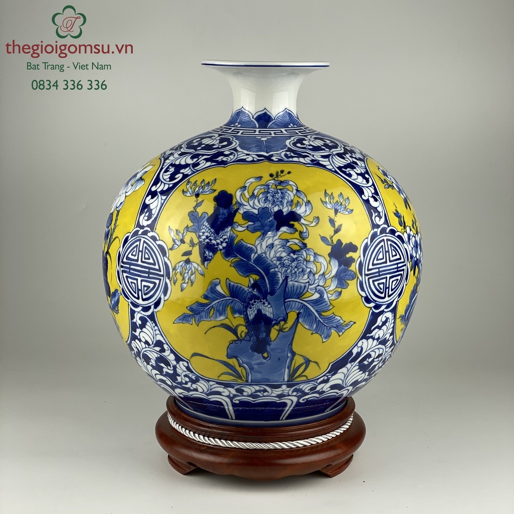 Như 1 lời cầu chúc, ước mong bốn mùa may mắn, sung túc quanh năm, bình an hạnh phúc cho gia chủ, biểu tượng này lại được vẽ trên bình mang hình dáng bầu tròn, miệng lọ nhỏ còn gì hợp lý bằng!