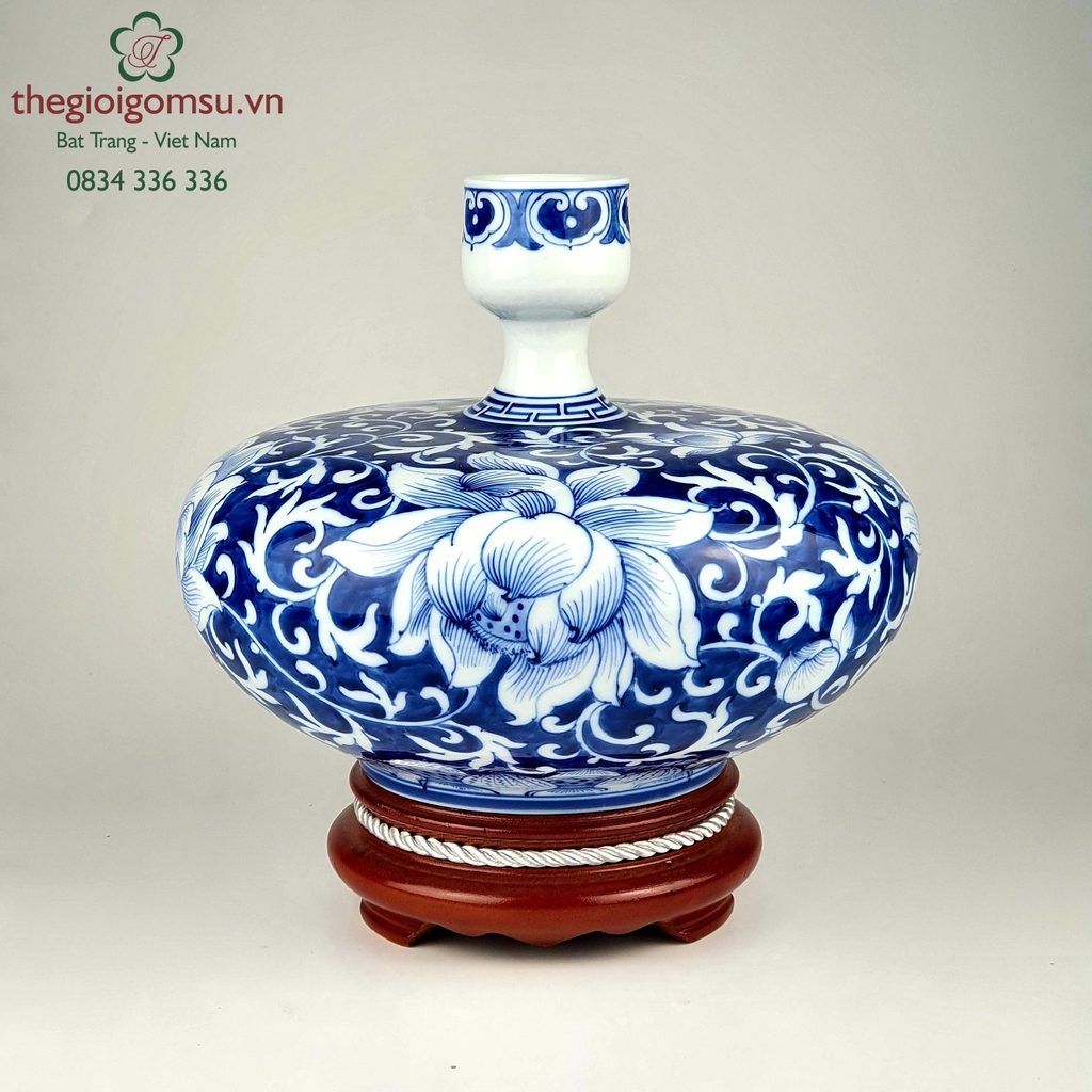 Bình hút tài lộc xét về hình dáng miệng loe rộng, giữa cổ thắt lại thân dưới phình to đến cực đại và điểm cuối thu nhỏ lại dần đặt lên trên kệ gỗ rất phù hợp. Về phong thủy hình dáng bình hút tài lộc vừa có khả năng hút tài lộc lại vừa giữ tài lộc rất tốt, đem lại nhiều may mắn cho gia chủ; việc đặt bình hút tài lộc trong nhà giúp gia chủ giữ khí tài và bảo quản nguồn tài lộc, sự giàu sang, phú quý. Hoa sen là loài hoa duy nhất hội tụ đủ năm yếu tố ngũ hành. Thân sen: mộc, nước (nơi sen mọc): thủy, bông sen hồng: hỏa, nhụy vàng: thổ, ngó sen trắng: kim. Biểu tượng cho tình yêu trong sáng, thuần khiết là quan niệm phong thủy về hoa sen. Nói như vậy bởi lẽ, trong quá trình sinh trưởng mỗi bộ phận đều có tượng trưng cho một điều gì đó. Một gốc thường mọc hai hoa: sự ân ái, hòa hợp giữa vợ và chồng. Đài và hoa cùng phát triển: vợ chồng giúp đỡ nhau cùng vươn lên, phát triển. Hạt sen: sớm sinh quý tử, một đài sen: con cháu đầy đàn. Bởi vậy, một tình yêu đang chờ đợi hái quả thì hãy chọn biểu tượng hoa sen. Các nhà phong thủy thường cho rằng hoa sen trên các đồ dùng, vật dụng trong gia đình sẽ đem lại nhiều may mắn, tài lộc, công danh cũng như điều hòa tâm trạng. Các sản phẩm gốm sứ được trang trí bằng hình ảnh hoa sen, đều toát lên những vẻ đẹp giản dị, thuần khiết, hé mở những ý nghĩa sâu xa. Hoa sen làm cho đồ gốm sứ mang những nét thanh tao, tinh khôi đôi lúc thiêng liêng.