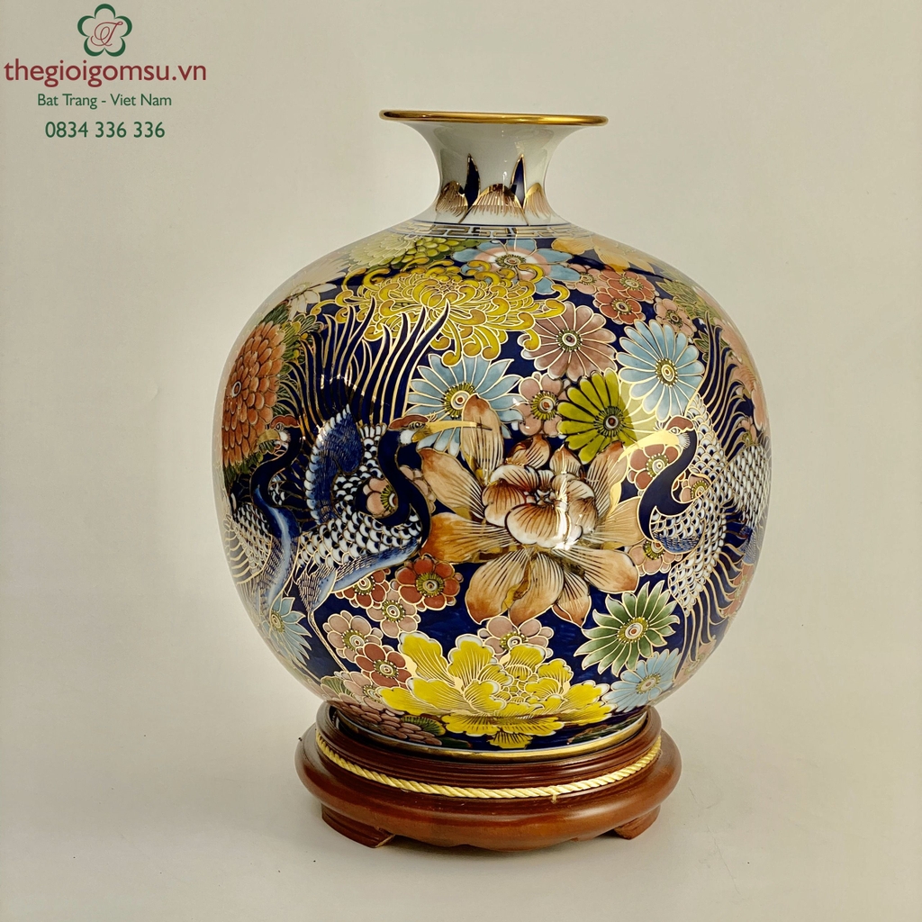 Bách Hạc Ngàn Hoa có ý nghĩa được coi là biểu tượng của sự êm ấm và hạnh phúc. Hạc là loài đứng đầu trong họ lông vũ, được gọi là “nhất phẩm điểu”. Trong văn hóa truyền thống, hạc là loài chim “dưới một người, trên vạn người”, địa vị chỉ ở dưới “phượng hoàng” (hoàng hậu) và đứng trên tất cả các loài chim khác. Nhưng trong hội họa, chim hạc thường được thể hiện với bộ lông màu trắng muốt. Đây lại là biểu tượng cho sự thanh cao, quyền quý, sự trong sáng và tinh khôi. Sự kết hợp nhiều chim hạc cũng với những bông hoa đủ màu sắc đã tạo lên một kiệt tác độc đáo, tinh tế. Chim hạc là hình ảnh biểu tượng cao quý sau phượng hoàng là chim quan trọng nhất trong truyền thuyết và nghệ thuật Trung Hoa. Chim hạc được coi là hình ảnh của việc bất tử và là biểu tượng thông dụng nhất trong nhiều hình ảnh khác cùng mang ý nghĩa trường thọ và sự minh mẫn trí tuệ của con người được bồi đắp theo năm tháng mà tu bổ lớn lên. Bình hút lộc được vẽ cực cầu kỳ làm say lòng bất kể người chơi gốm sứ nào khi lần đầu gặp mặt. Hàng số lượng hạn chế, nhanh tay để có sản phẩm chất lượng với giá tốt nhất.
