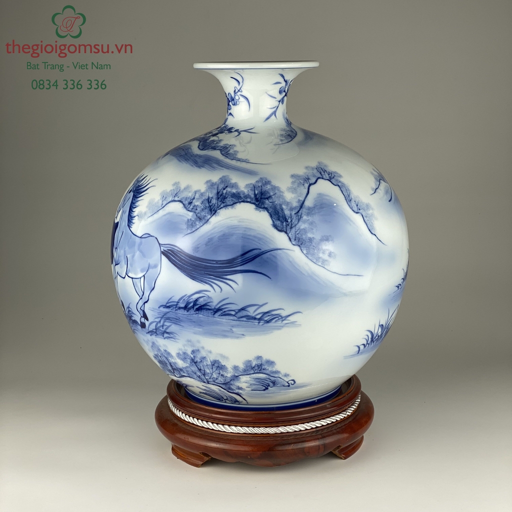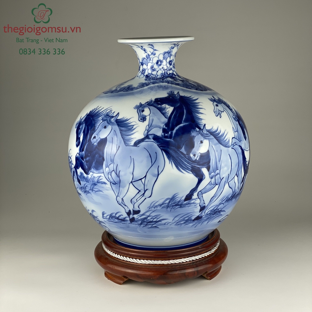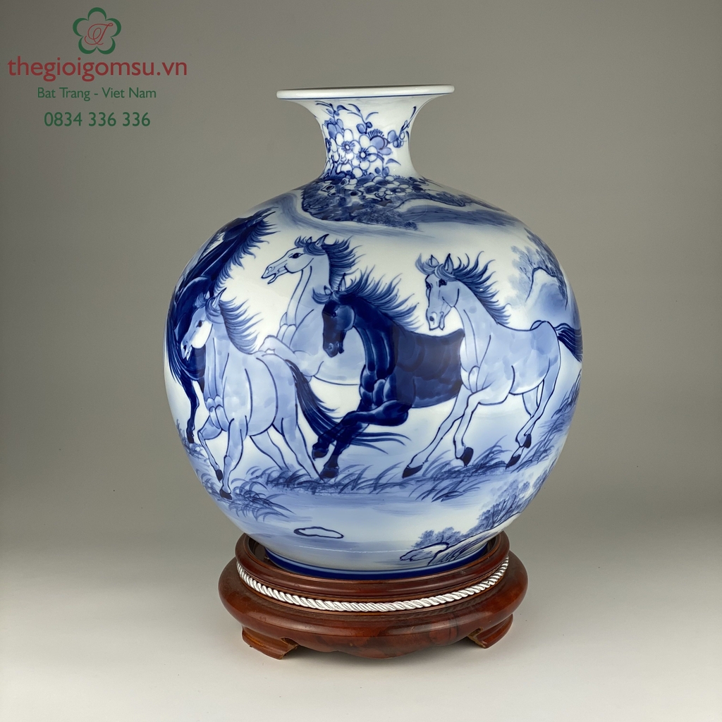 - Quy trình chế tác: Bình hút tài lộc Bát mã truy phong men lam chế tác 100% thủ công theo bí quyết “nhất xương, nhì da, thứ ba dạc lò” của làng nghề. Từ đất cao lanh hiếm có của Đông Triều - với độ dẻo, quánh và phẩm chất cao - nghệ nhân nhào trộn cùng nước phù sa sông Hồng tạo thành xương gốm tốt nhất. Trải qua nung đốt liên tục 12 giờ ở 1350 độ C, lớp men lam nóng chảy thành những nét hoa văn đậm nhạt tinh tế. Sản phẩm đạt độ bền cao trọn đời.
