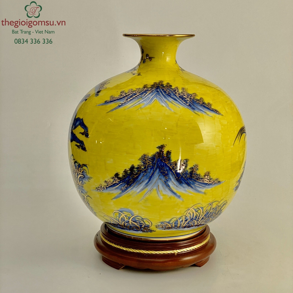 - Chất liệu: Bình hút tài lộc vẽ vàng 24k được tạo thành từ đất mẹ Đông Triều hòa cùng mạch nước thiêng sông Hồng cho cốt gốm dày dặn, cầm chắc tay, độ bền vượt trội.