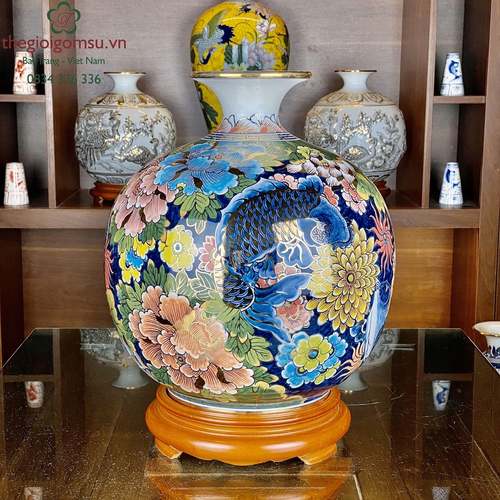 - Quy trình chế tác: Sản phẩm được chế tác thủ công 100% bởi bàn tay người nghệ nhân giỏi Bát Tràng. Trải qua lần nung đầu tiên ở nhiệt độ 1350 độ C và lần nung tiếp theo ở nhiệt độ 800 độ C để lớp vàng kim nóng chảy và bám chặt vào bề mặt sứ tạo nên vẻ đẹp sang quý, đẳng cấp.