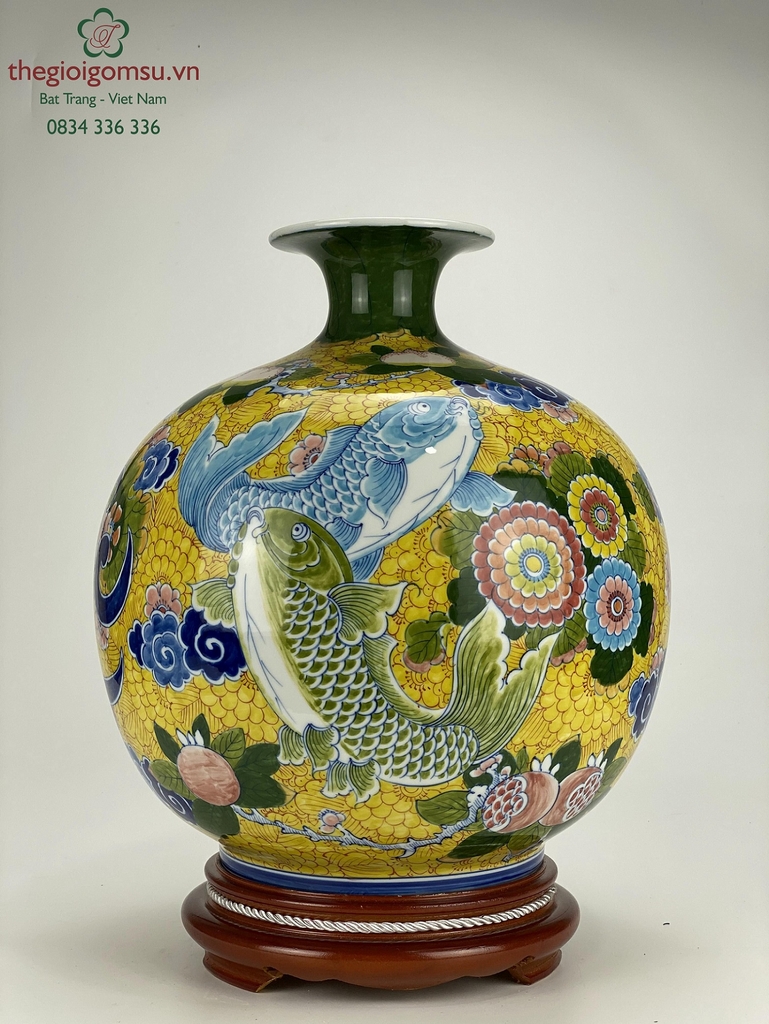Bình hút tài lộc Bát Tràng vẽ cá chép liên hoa được làm thủ công hoàn toàn. Với họa tiết tinh tế, được vẽ tay bởi các nghệ nhận 100%. Mang đến sự mềm mại, hoàn hảo và lôi cuốn ở mọi góc độ. Với màu sắc tươi sáng bình hứa hẹn sẽ mang đến sự mới mẻ, sức sống căng tràn cho không gian trưng bày của gia đình. Ngoài ra, theo phong thủy bình còn mang ý nghĩa tượng trưng cho sự no đủ, dư giả về vật chất, cho sự sinh sôi nảy nở. Bình còn là một món quà vô cùng ý nghĩa mà bạn có thể gửi tặng cho người thân, bạn bè, đối tác, sếp vào các dịp lễ tết quan trọng.