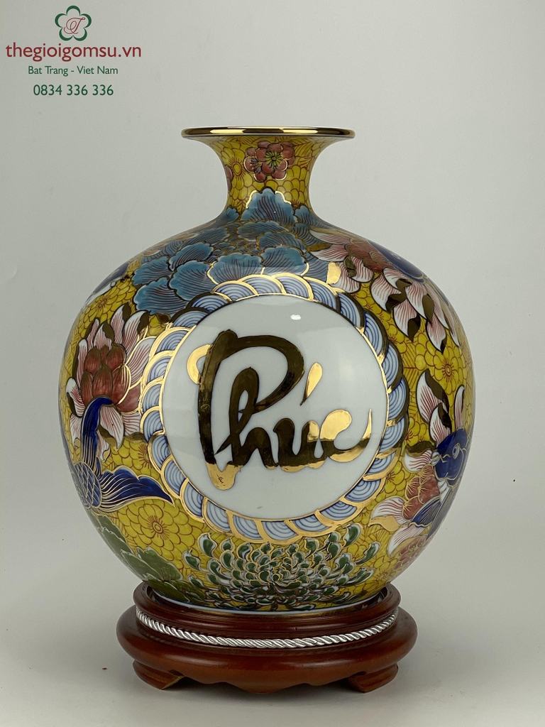 - Chất liệu: Bình hút tài lộc vẽ vàng 24k được tạo thành từ đất mẹ Đông Triều hòa cùng mạch nước thiêng sông Hồng cho cốt gốm dày dặn, cầm chắc tay, độ bền vượt trội.