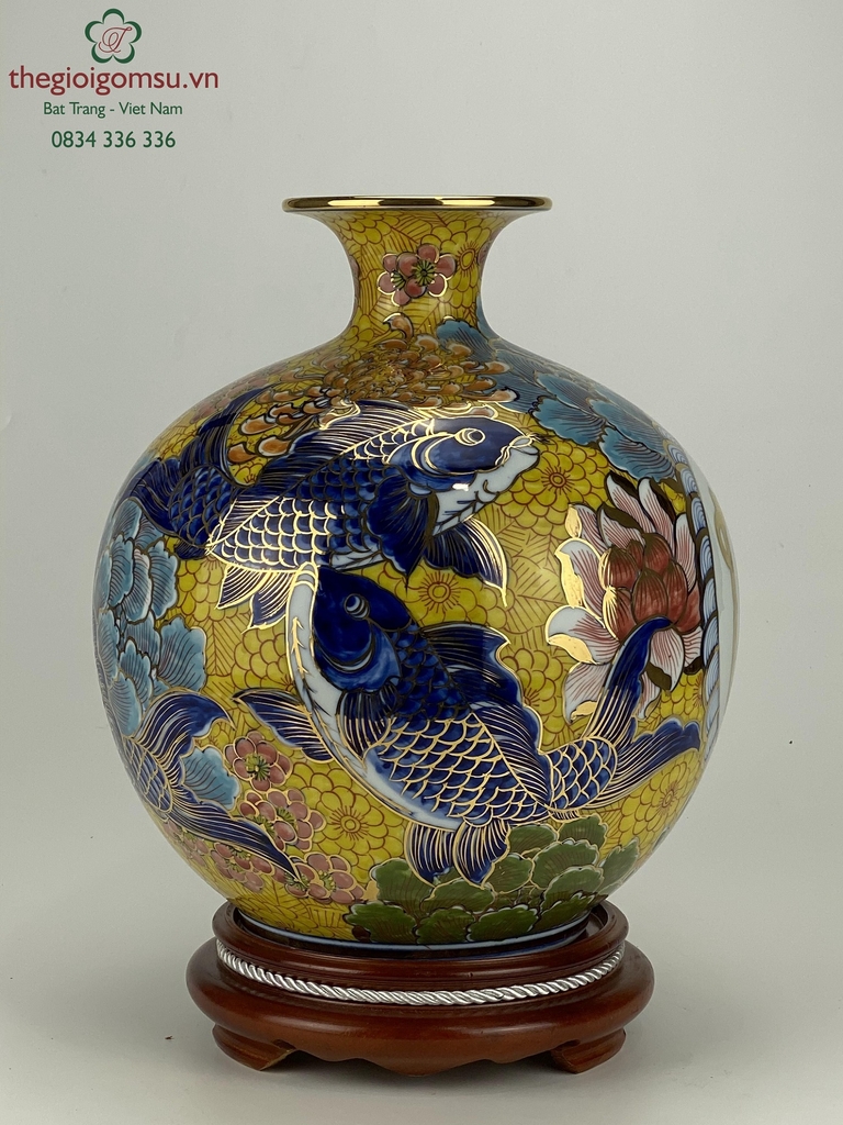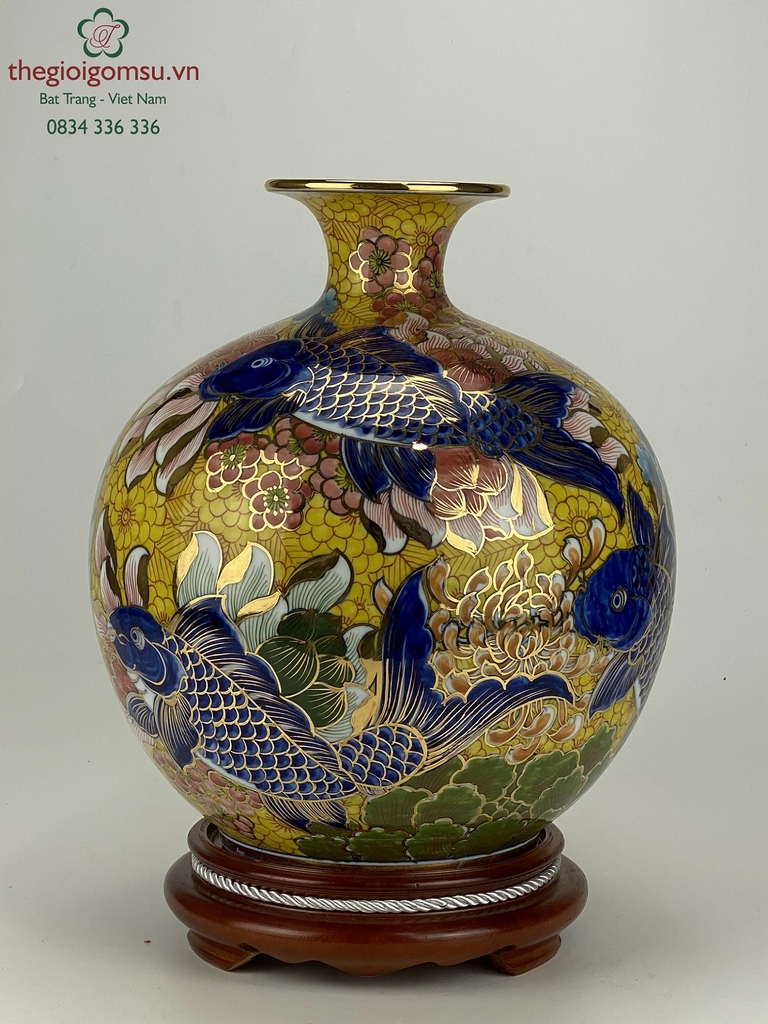 - Quy trình chế tác: Sản phẩm được chế tác thủ công 100% bởi bàn tay người nghệ nhân giỏi Bát Tràng. Trải qua lần nung đầu tiên ở nhiệt độ 1350 độ C và lần nung tiếp theo ở nhiệt độ 800 độ C để lớp vàng kim nóng chảy và bám chặt vào bề mặt sứ tạo nên vẻ đẹp sang quý, đẳng cấp.