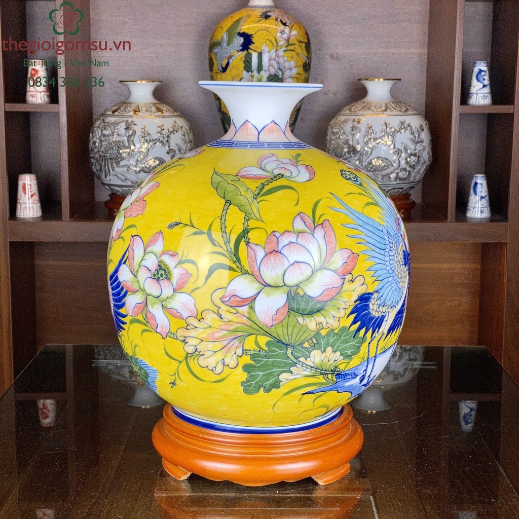 - Chất liệu: Bình hút tài lộc được tạo thành từ đất mẹ Đông Triều hòa cùng mạch nước thiêng sông Hồng cho cốt gốm dày dặn, cầm chắc tay, độ bền vượt trội.