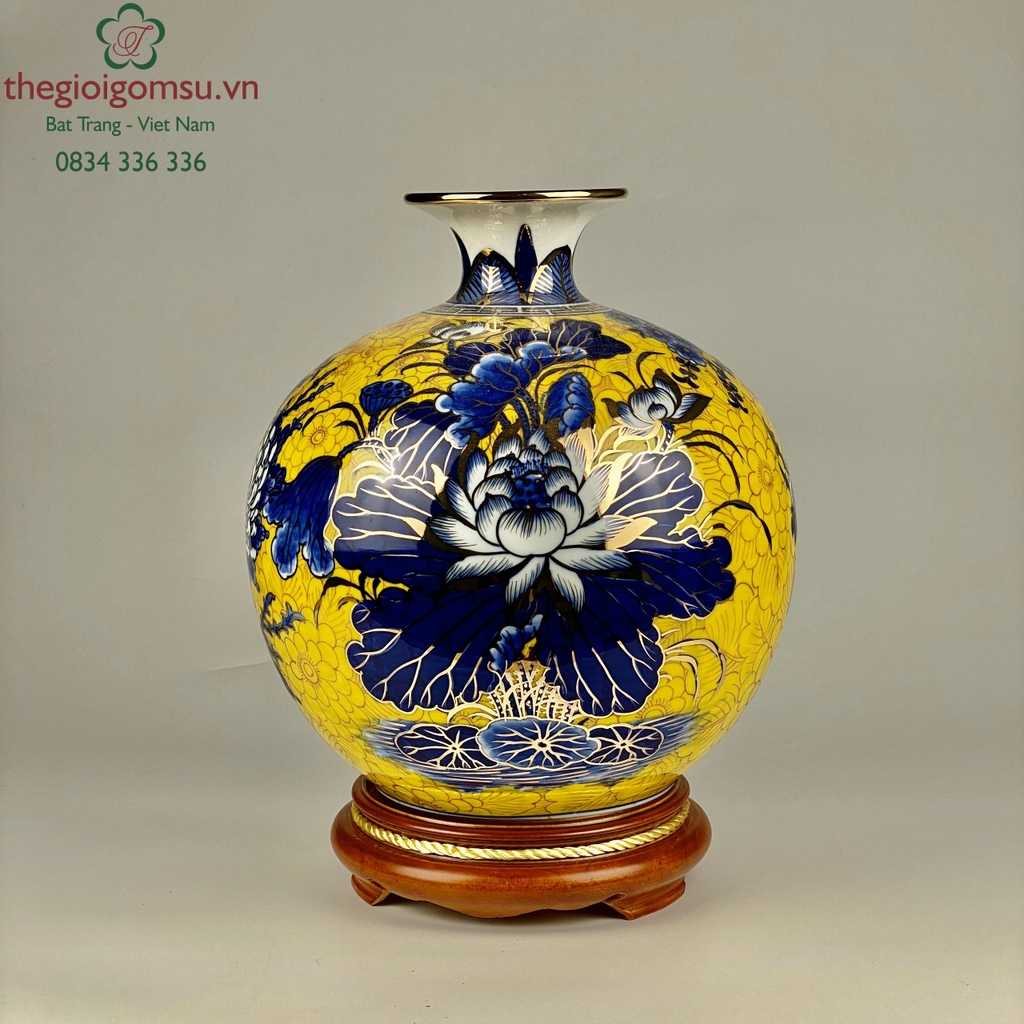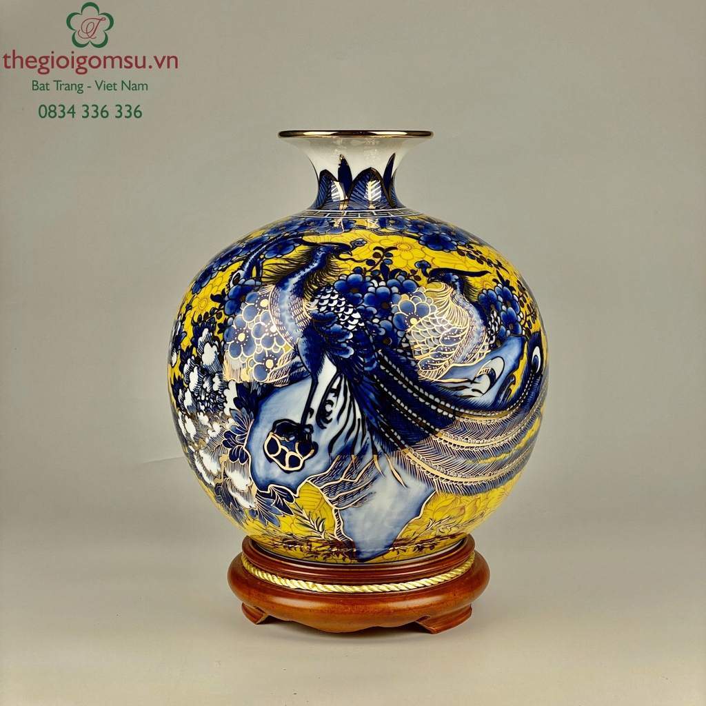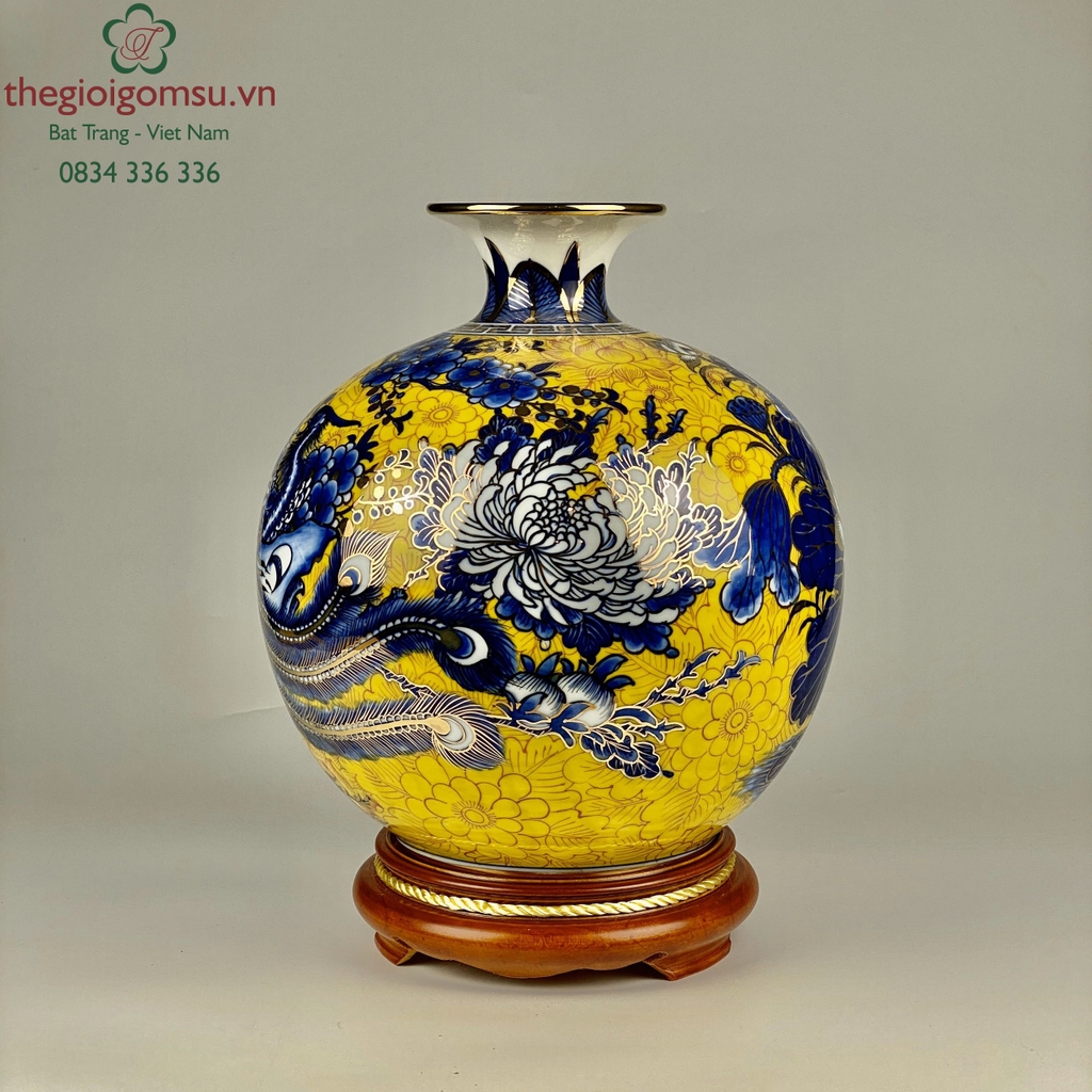 - Chất liệu: Bình hút tài lộc vẽ vàng 24k được tạo thành từ đất mẹ Đông Triều hòa cùng mạch nước thiêng sông Hồng cho cốt gốm dày dặn, cầm chắc tay, độ bền vượt trội.