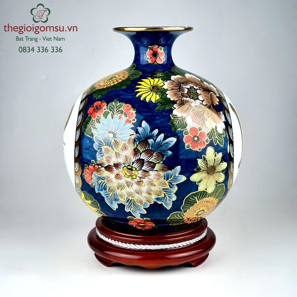 - Quy trình chế tác: Sản phẩm được chế tác thủ công 100% bởi bàn tay người nghệ nhân giỏi Bát Tràng. Trải qua lần nung đầu tiên ở nhiệt độ 1350 độ C và lần nung tiếp theo ở nhiệt độ 800 độ C để lớp vàng kim nóng chảy và bám chặt vào bề mặt sứ tạo nên vẻ đẹp sang quý, đẳng cấp.