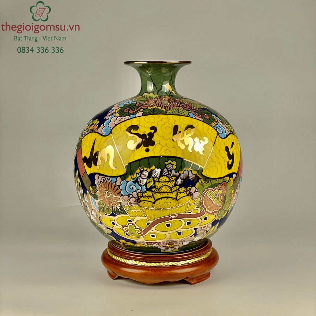 - Chất liệu: Bình hút tài lộc vẽ vàng 24k được tạo thành từ đất mẹ Đông Triều hòa cùng mạch nước thiêng sông Hồng cho cốt gốm dày dặn, cầm chắc tay, độ bền vượt trội.