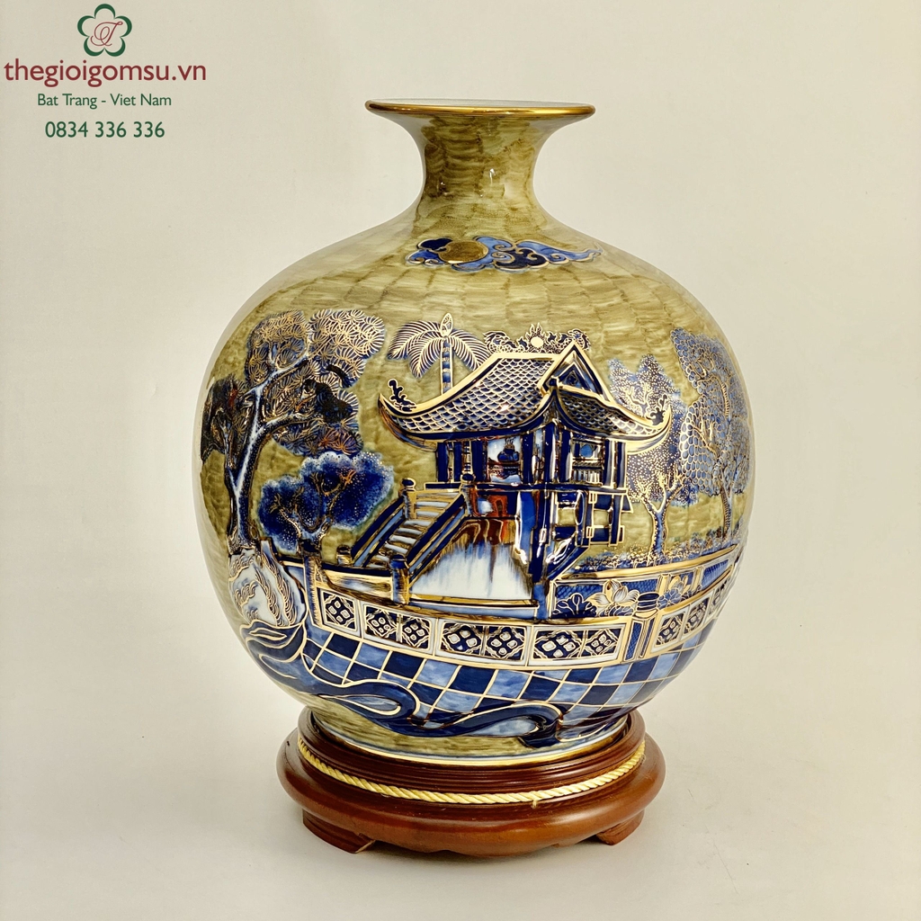 - Chất liệu: Bình hút tài lộc vẽ vàng 24k được tạo thành từ đất mẹ Đông Triều hòa cùng mạch nước thiêng sông Hồng cho cốt gốm dày dặn, cầm chắc tay, độ bền vượt trội.