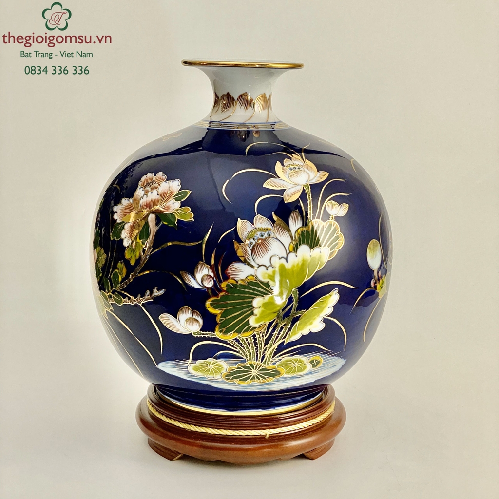 - Quy trình chế tác: Sản phẩm được chế tác thủ công 100% bởi bàn tay người nghệ nhân giỏi Bát Tràng. Trải qua lần nung đầu tiên ở nhiệt độ 1350 độ C và lần nung tiếp theo ở nhiệt độ 800 độ C để lớp vàng kim nóng chảy và bám chặt vào bề mặt sứ tạo nên vẻ đẹp sang quý, đẳng cấp.