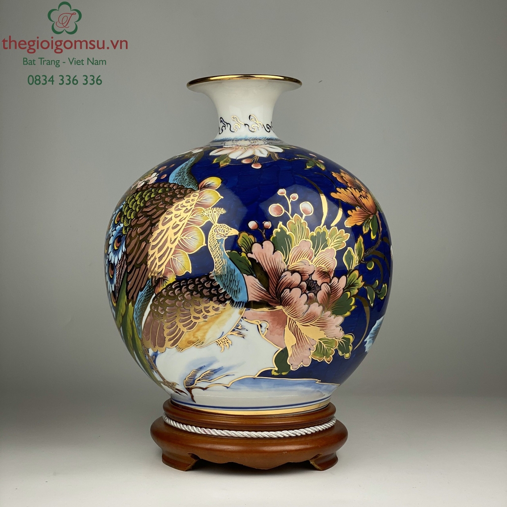 - Quy trình chế tác: Sản phẩm được chế tác thủ công 100% bởi bàn tay người nghệ nhân giỏi Bát Tràng. Trải qua lần nung đầu tiên ở nhiệt độ 1350 độ C và lần nung tiếp theo ở nhiệt độ 800 độ C để lớp vàng kim nóng chảy và bám chặt vào bề mặt sứ tạo nên vẻ đẹp sang quý, đẳng cấp.