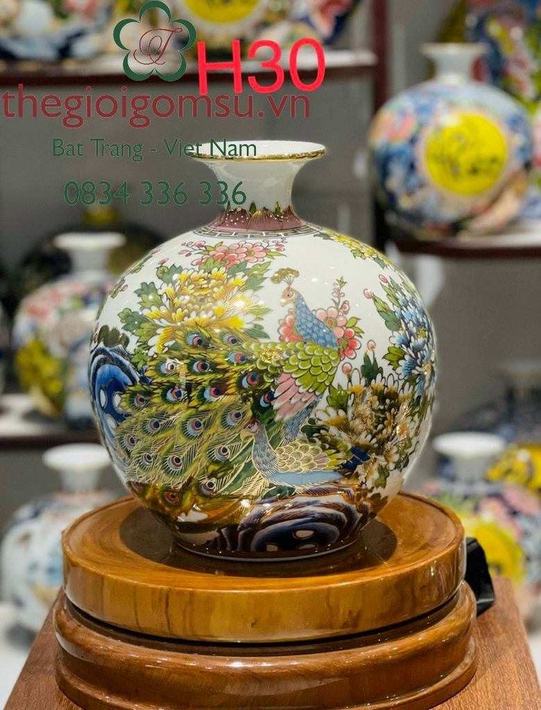- Quy trình chế tác: Sản phẩm được chế tác thủ công 100% bởi bàn tay người nghệ nhân giỏi Bát Tràng. Trải qua lần nung đầu tiên ở nhiệt độ 1350 độ C và lần nung tiếp theo ở nhiệt độ 800 độ C để lớp vàng kim nóng chảy và bám chặt vào bề mặt sứ tạo nên vẻ đẹp sang quý, đẳng cấp.