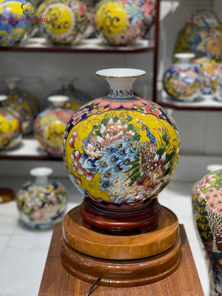 - Quy trình chế tác: Sản phẩm được chế tác thủ công 100% bởi bàn tay người nghệ nhân giỏi Bát Tràng. Trải qua lần nung đầu tiên ở nhiệt độ 1350 độ C và lần nung tiếp theo ở nhiệt độ 800 độ C để lớp vàng kim nóng chảy và bám chặt vào bề mặt sứ tạo nên vẻ đẹp sang quý, đẳng cấp.