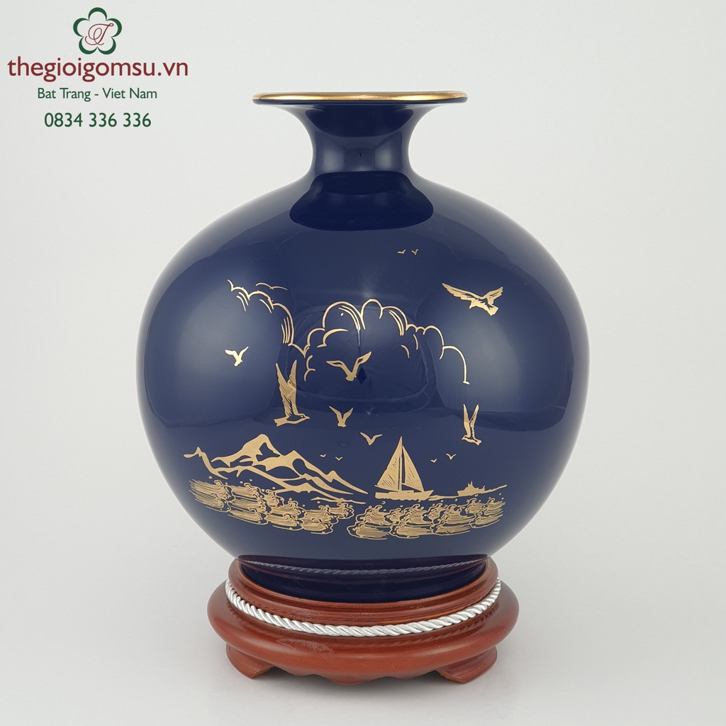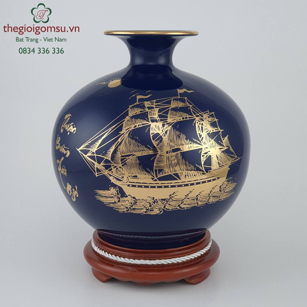 - Chất liệu: Bình hút tài lộc vẽ vàng 24k Thuận Buồm Xuôi Gió được tạo thành từ đất mẹ Đông Triều hòa cùng mạch nước thiêng sông Hồng cho cốt gốm dày dặn, cầm chắc tay, độ bền vượt trội.