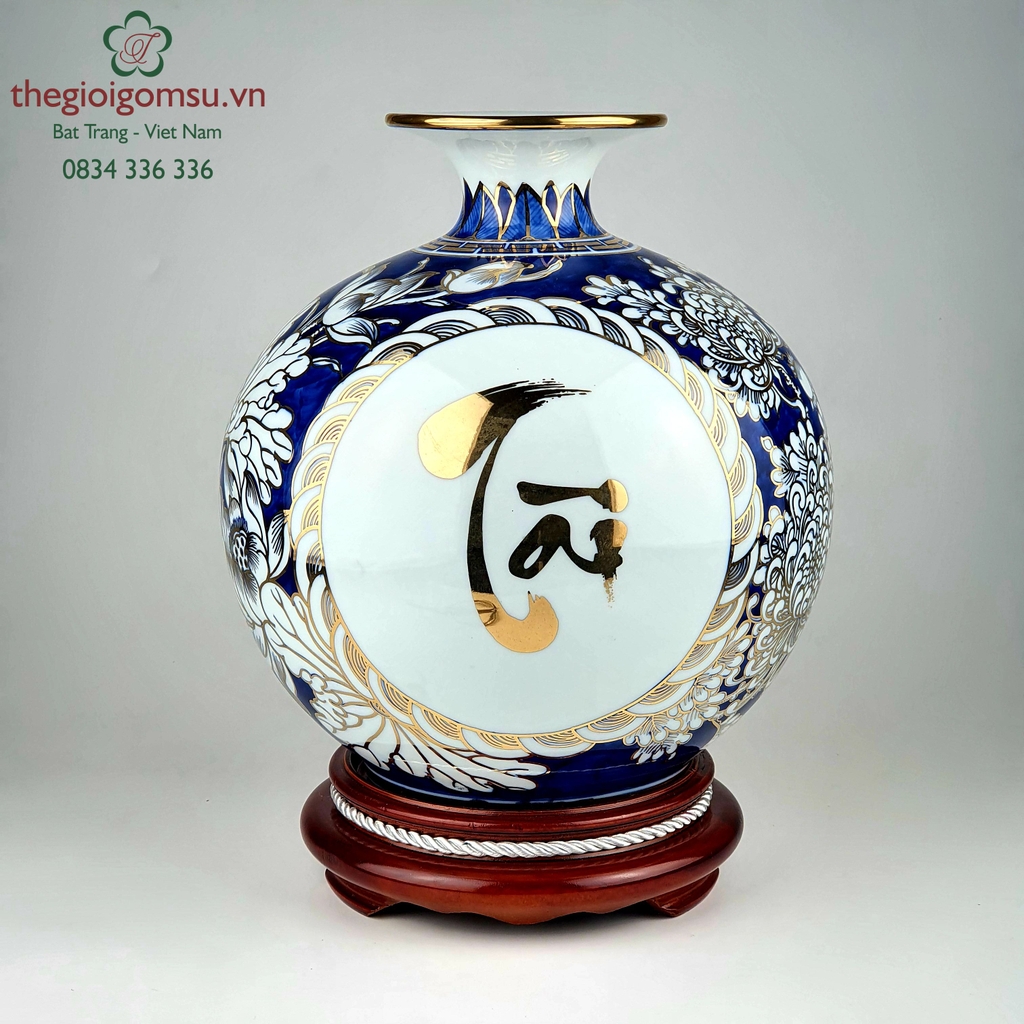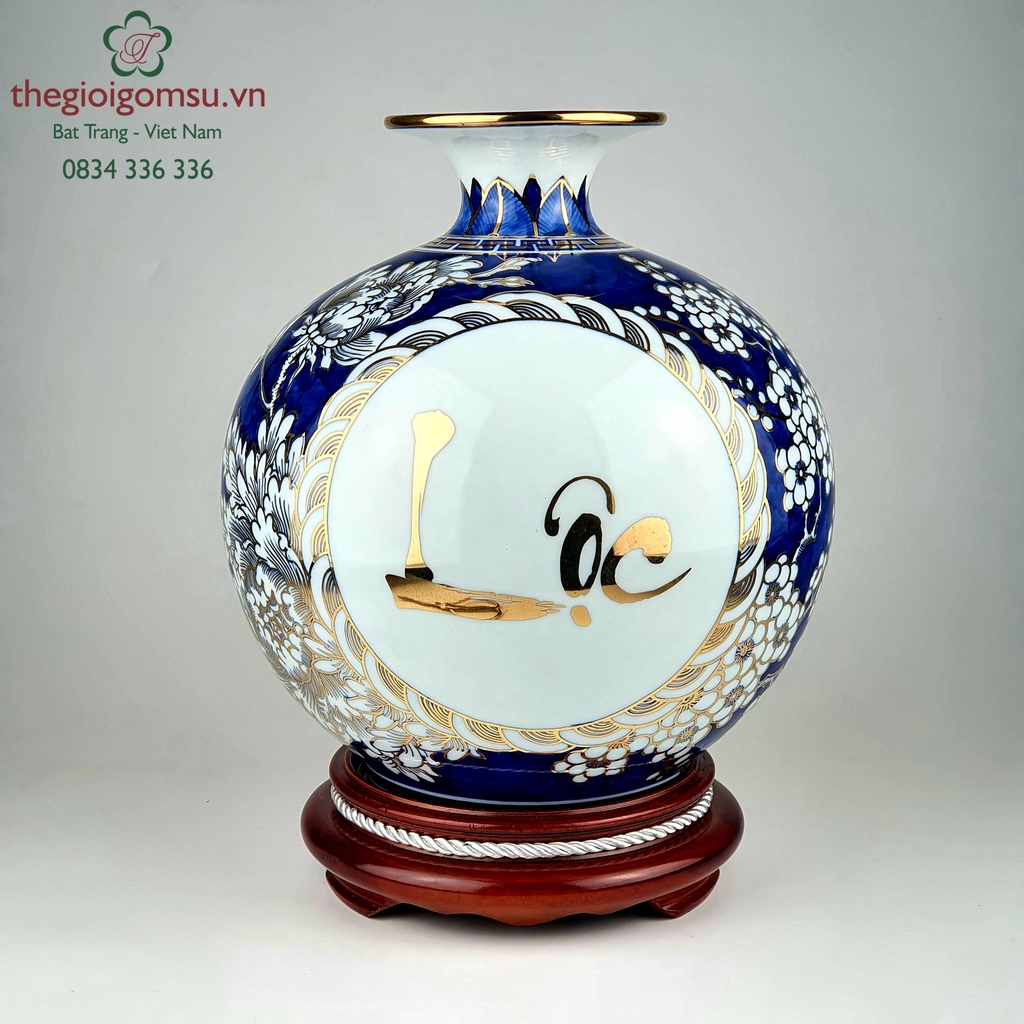Bình hút tài lộc ghi chữ Tài – Lộc bằng vàng được làm thủ công hoàn toàn, họa tiết vẽ tay trên nền đất sau đó được tráng men cho vào lò nung. Sau đó được vẽ tiếp viền vàng rồi cho vào lò nung lần nữa để đảm bảo bền màu, vàng bám chắc trên thân bình.