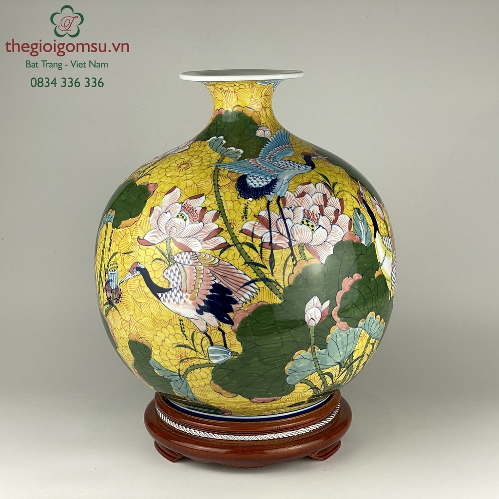 - Chất liệu: Bình hút tài lộc được tạo thành từ đất mẹ Đông Triều hòa cùng mạch nước thiêng sông Hồng cho cốt gốm dày dặn, cầm chắc tay, độ bền vượt trội.