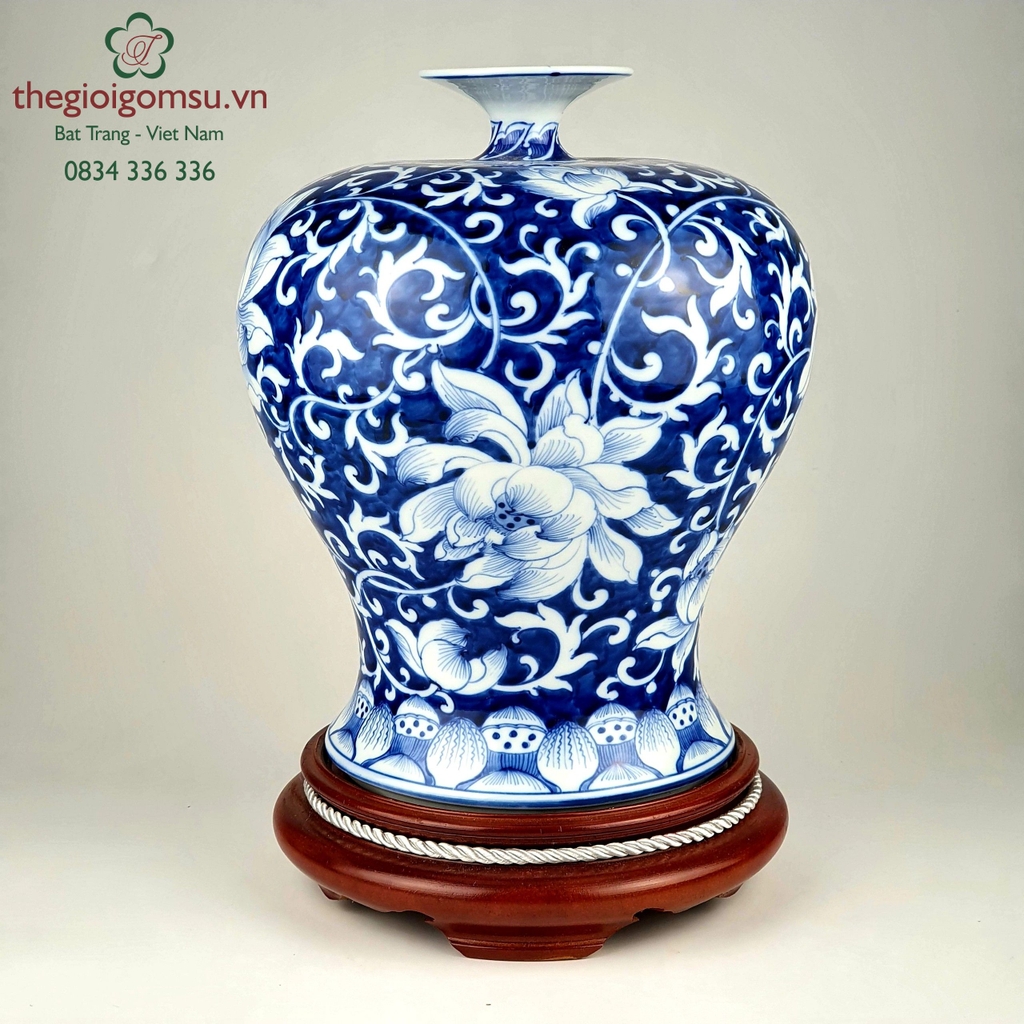 Mai bình với màu xanh chủ đạo cùng họa tiết mang đậm phong cách truyền thống sẽ không chỉ giúp cho việc hút khí lành mang tới sự tụ tài, tụ lộc cho gia chủ mà mỗi họa tiết trên bình cũng góp phần làm đẹp không gian và mang lại may mắn.