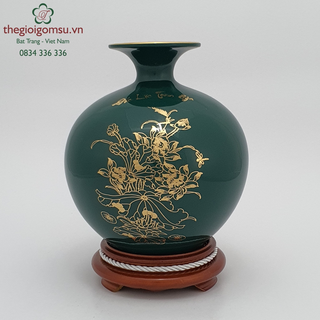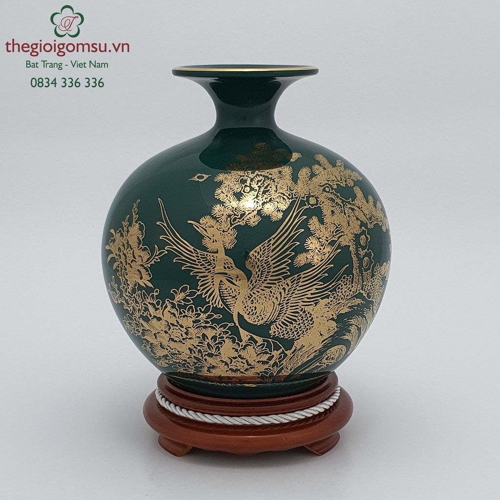 - Chất liệu: Bình hút tài lộc vẽ vàng 24k "Tùng Hạc Diên Niên" vẽ vàng được tạo thành từ đất mẹ Đông Triều hòa cùng mạch nước thiêng sông Hồng cho cốt gốm dày dặn, cầm chắc tay, độ bền vượt trội.