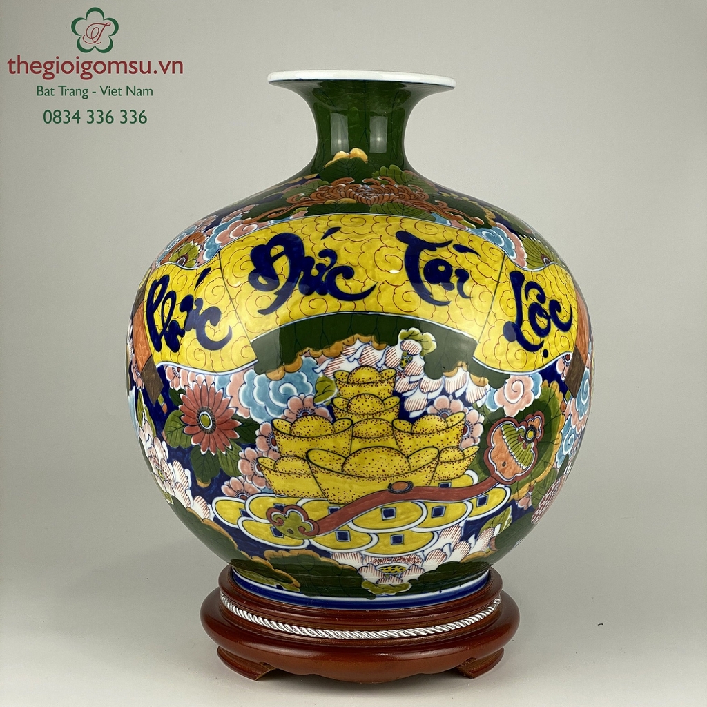 - Chất liệu: Bình hút tài lộc được tạo thành từ đất mẹ Đông Triều hòa cùng mạch nước thiêng sông Hồng cho cốt gốm dày dặn, cầm chắc tay, độ bền vượt trội.