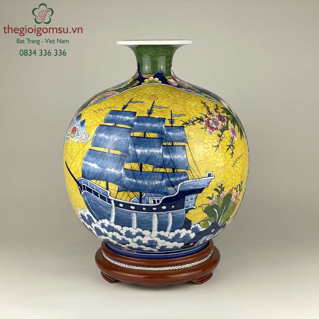 - Chất liệu: Bình hút tài lộc được tạo thành từ đất mẹ Đông Triều hòa cùng mạch nước thiêng sông Hồng cho cốt gốm dày dặn, cầm chắc tay, độ bền vượt trội.