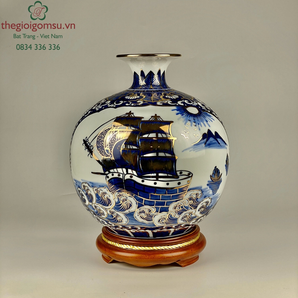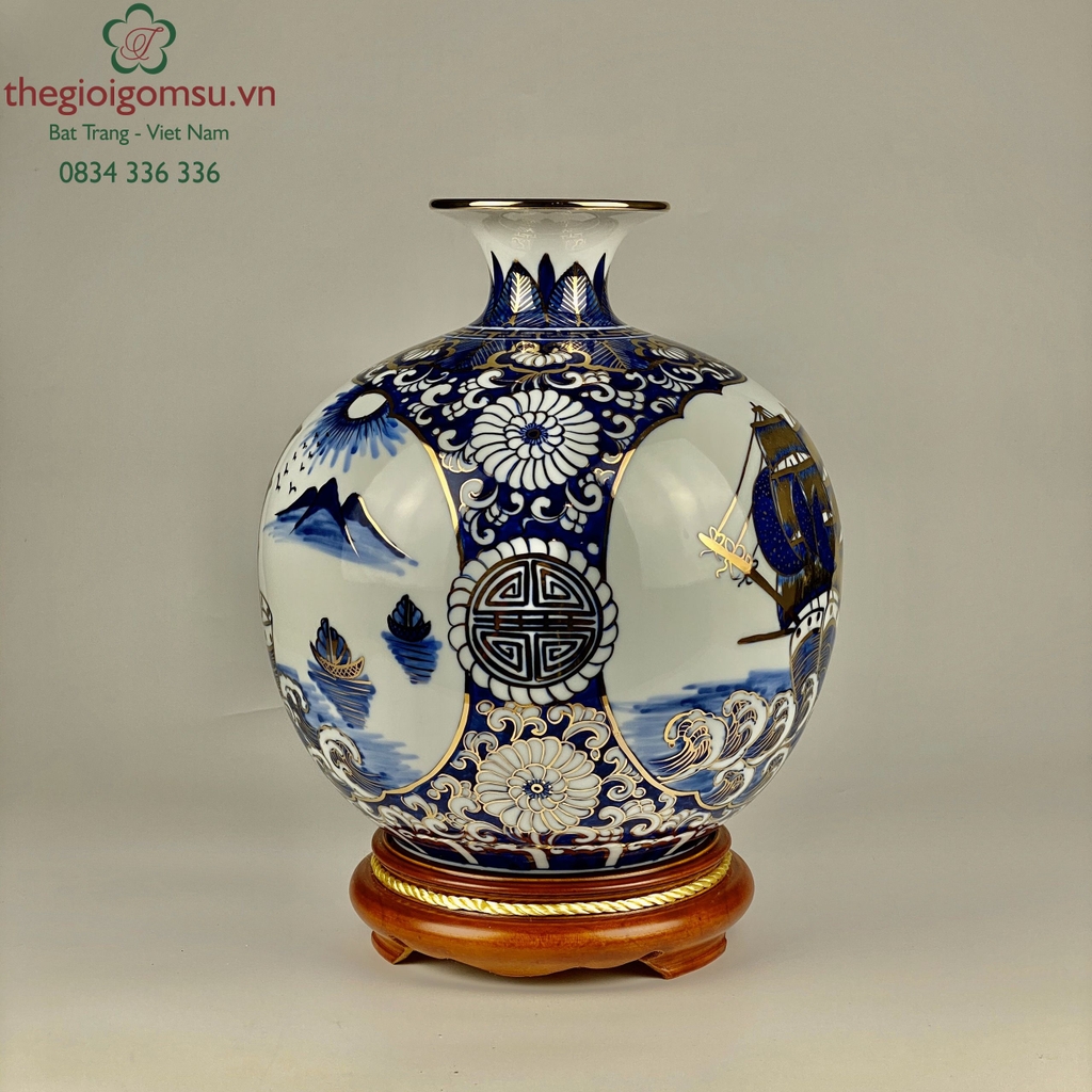 - Chất liệu: Bình hút tài lộc vẽ vàng 24k được tạo thành từ đất mẹ Đông Triều hòa cùng mạch nước thiêng sông Hồng cho cốt gốm dày dặn, cầm chắc tay, độ bền vượt trội.