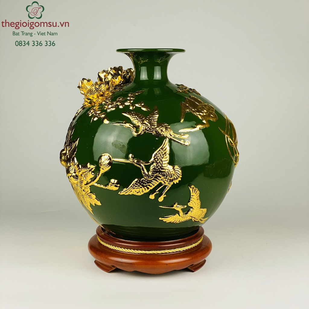 - Quy trình chế tác: Sản phẩm được chế tác thủ công 100% bởi bàn tay người nghệ nhân giỏi Bát Tràng. Trải qua lần nung đầu tiên ở nhiệt độ 1350 độ C sau đó với đôi tay nghệ nhân dát vàng lên sản phẩm bám chặt vào bề mặt sứ tạo nên vẻ đẹp sang quý, đẳng cấp.
