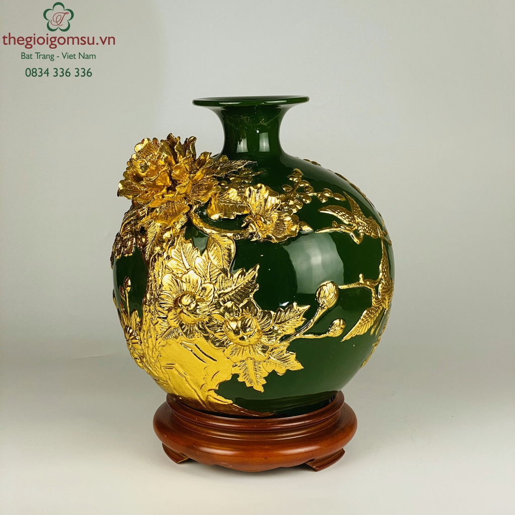 - Chất liệu: Bình hút tài lộc dát vàng được tạo thành từ đất mẹ Đông Triều hòa cùng mạch nước thiêng sông Hồng cho cốt gốm dày dặn, cầm chắc tay, độ bền vượt trội.