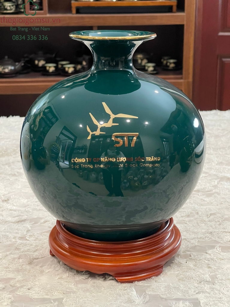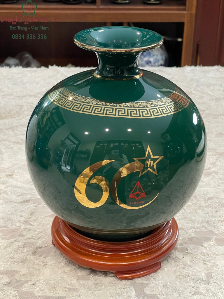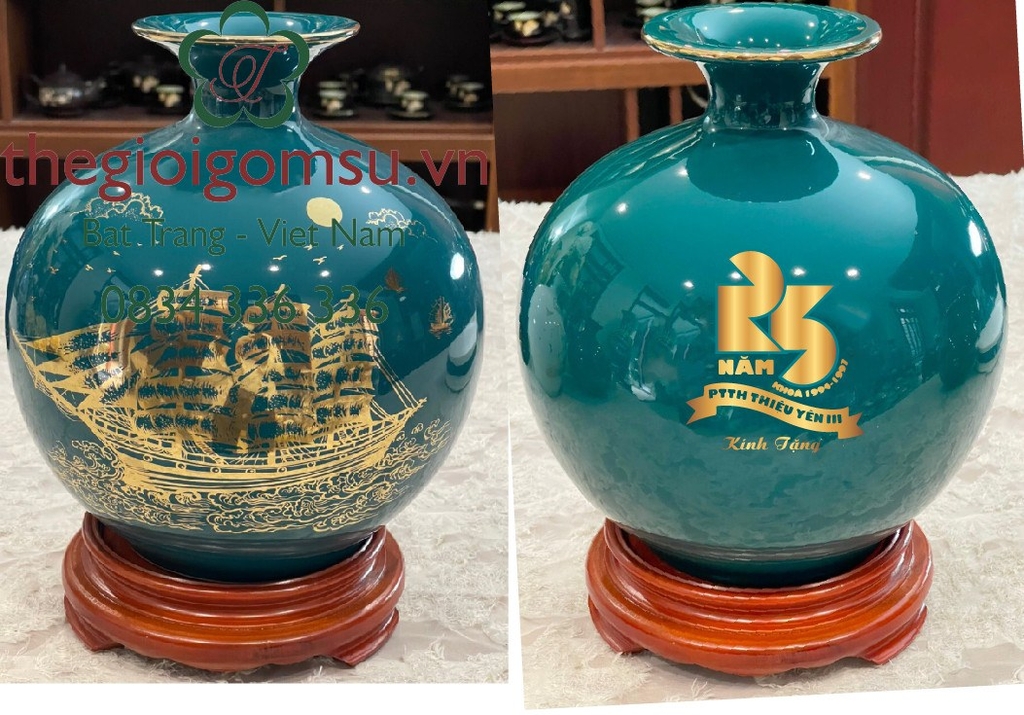- Quy trình chế tác: Sản phẩm được chế tác thủ công 100% bởi bàn tay người nghệ nhân giỏi Bát Tràng. Trải qua lần nung đầu tiên ở nhiệt độ 1350 độ C và lần nung tiếp theo ở nhiệt độ 800 độ C để lớp vàng kim nóng chảy và bám chặt vào bề mặt sứ tạo nên vẻ đẹp sang quý, đẳng cấp.