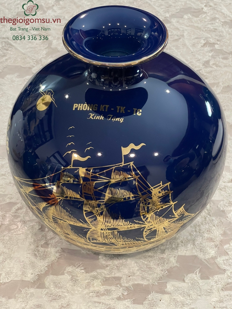 Quy trình chế tác: Sản phẩm được chế tác thủ công 100% bởi bàn tay người nghệ nhân giỏi Bát Tràng. Trải qua lần nung đầu tiên ở nhiệt độ 1350 độ C và lần nung tiếp theo ở nhiệt độ 800 độ C để lớp vàng kim nóng chảy và bám chặt vào bề mặt sứ tạo nên vẻ đẹp sang quý, đẳng cấp.