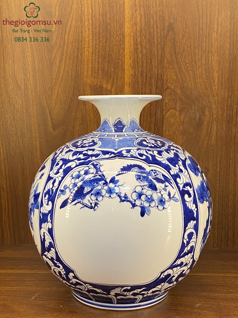 Như 1 lời cầu chúc, ước mong bốn mùa may mắn, sung túc quanh năm, bình an hạnh phúc cho gia chủ, biểu tượng này lại được vẽ trên bình mang hình dáng bầu tròn, miệng lọ nhỏ còn gì hợp lý bằng!