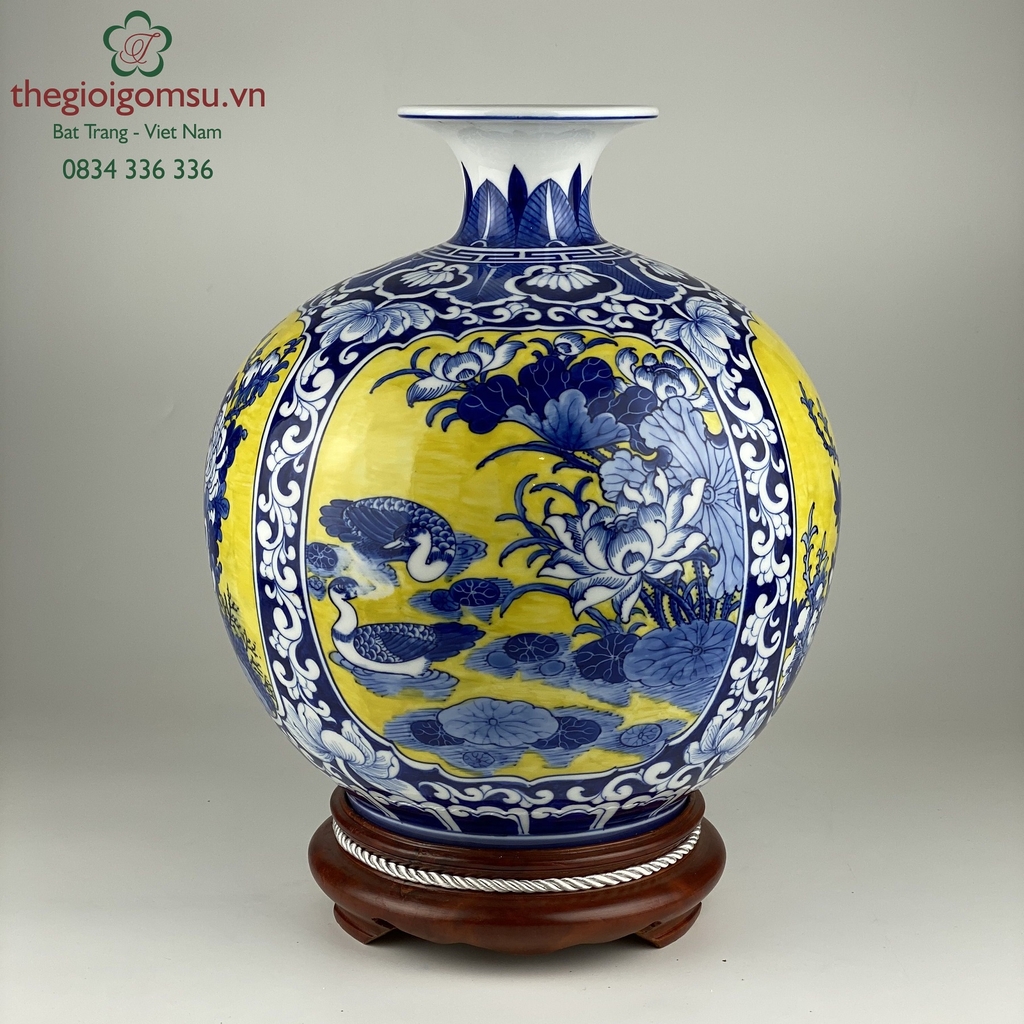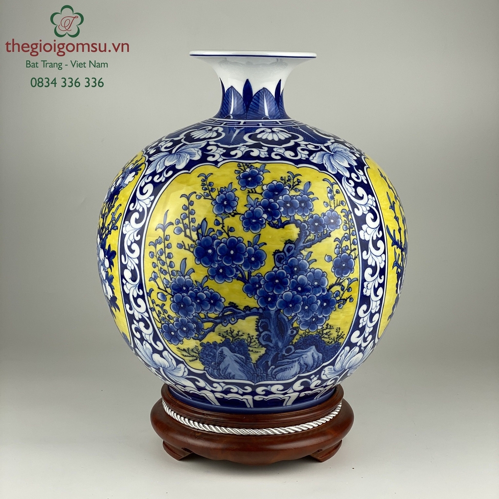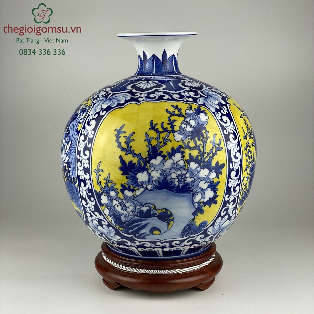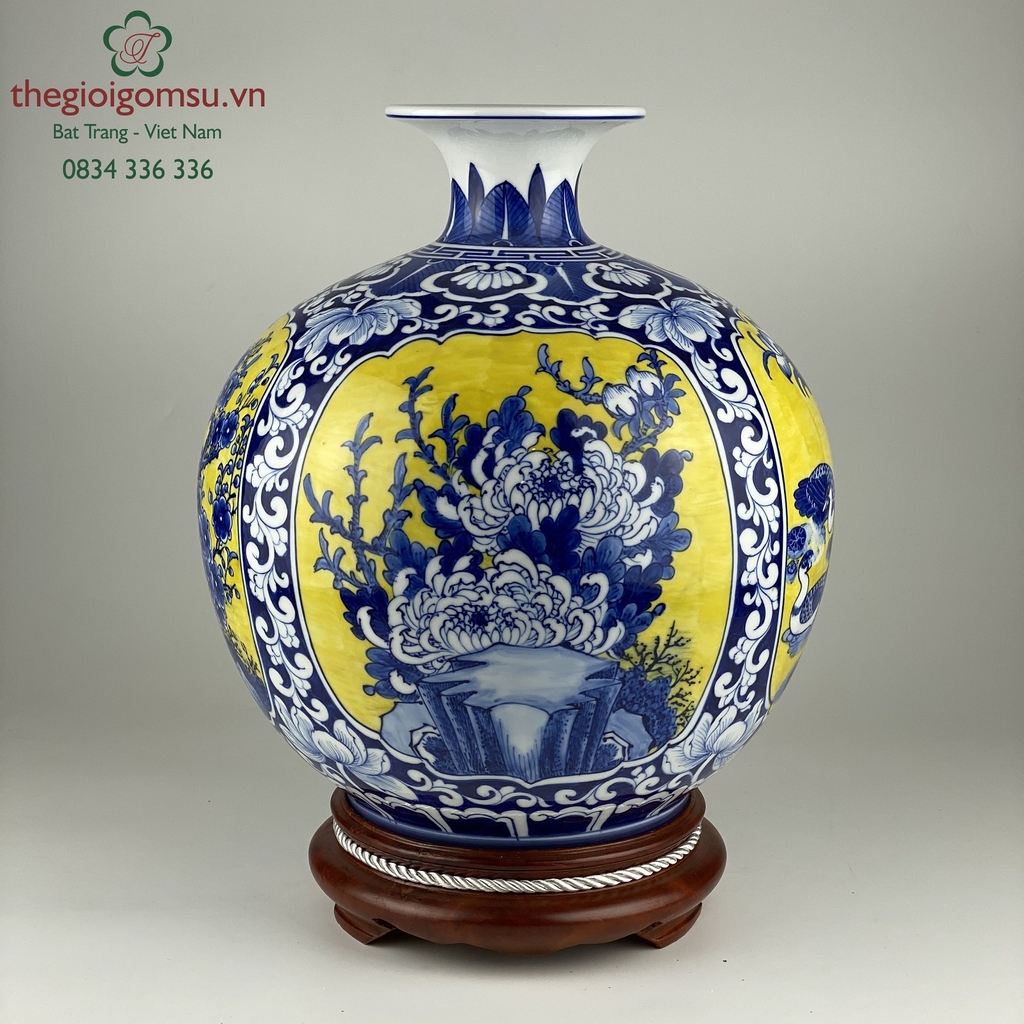 Như 1 lời cầu chúc, ước mong bốn mùa may mắn, sung túc quanh năm, bình an hạnh phúc cho gia chủ, biểu tượng này lại được vẽ trên bình mang hình dáng bầu tròn, miệng lọ nhỏ còn gì hợp lý bằng!