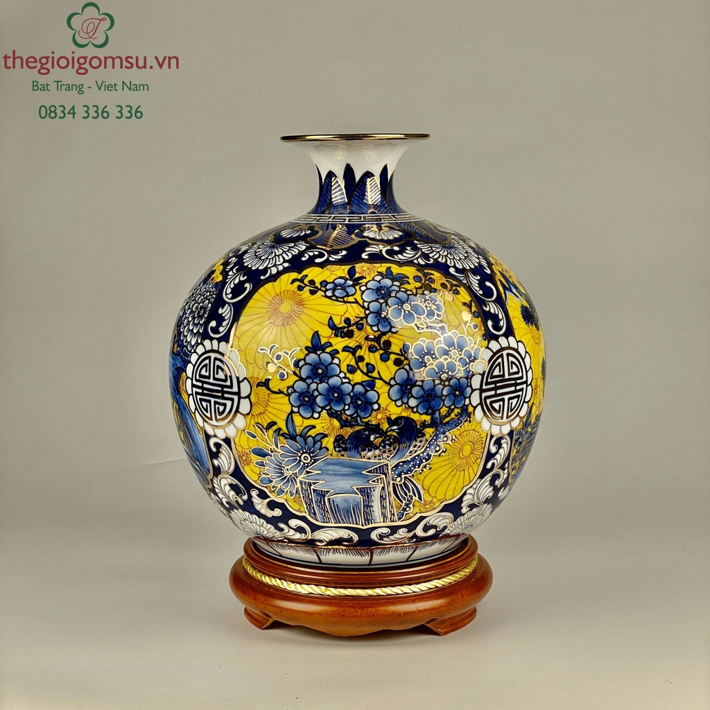 Như 1 lời cầu chúc, ước mong bốn mùa may mắn, sung túc quanh năm, bình an hạnh phúc cho gia chủ, biểu tượng này lại được vẽ trên bình mang hình dáng bầu tròn, miệng lọ nhỏ còn gì hợp lý bằng!