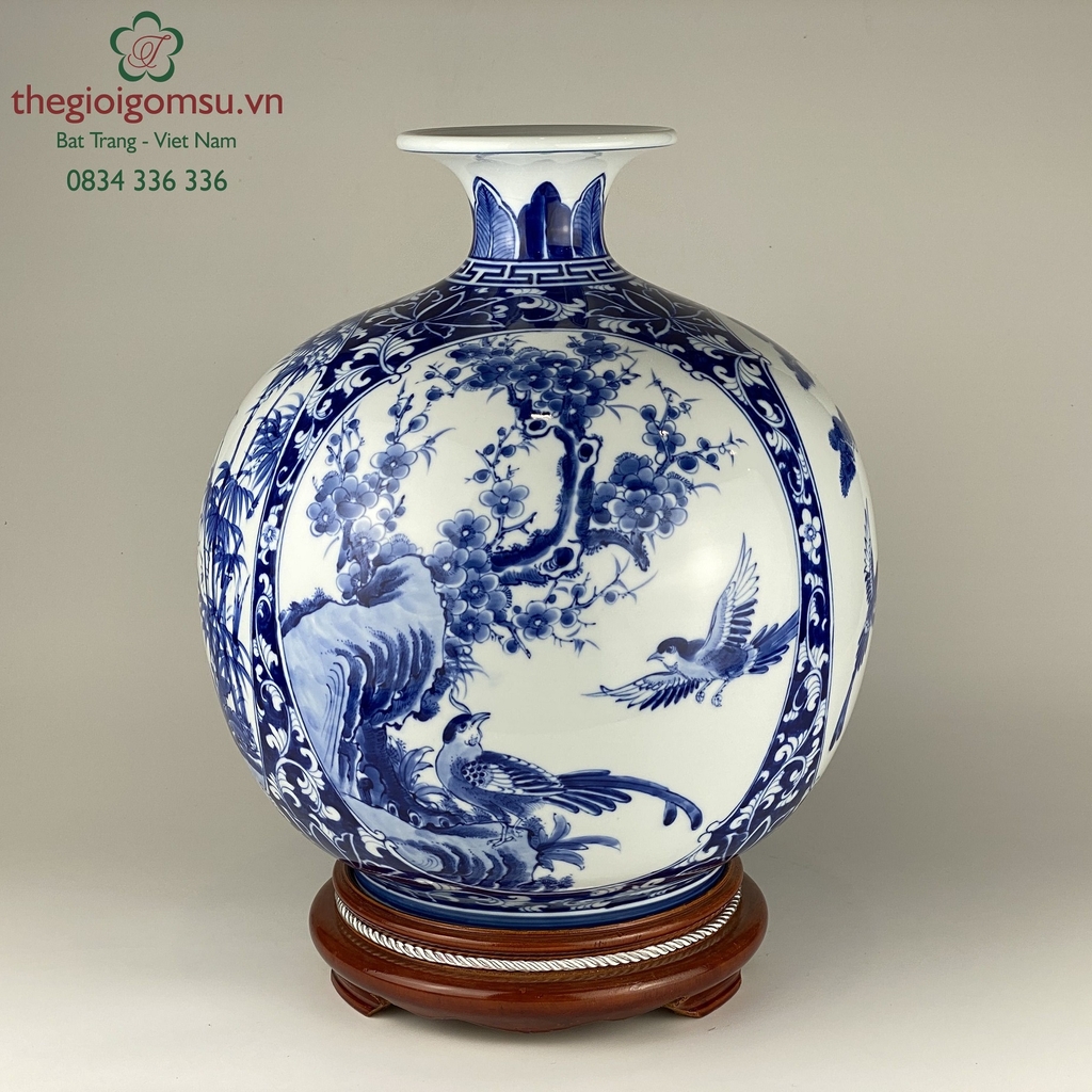 Như 1 lời cầu chúc, ước mong bốn mùa may mắn, sung túc quanh năm, bình an hạnh phúc cho gia chủ, biểu tượng này lại được vẽ trên bình mang hình dáng bầu tròn, miệng lọ nhỏ còn gì hợp lý bằng!