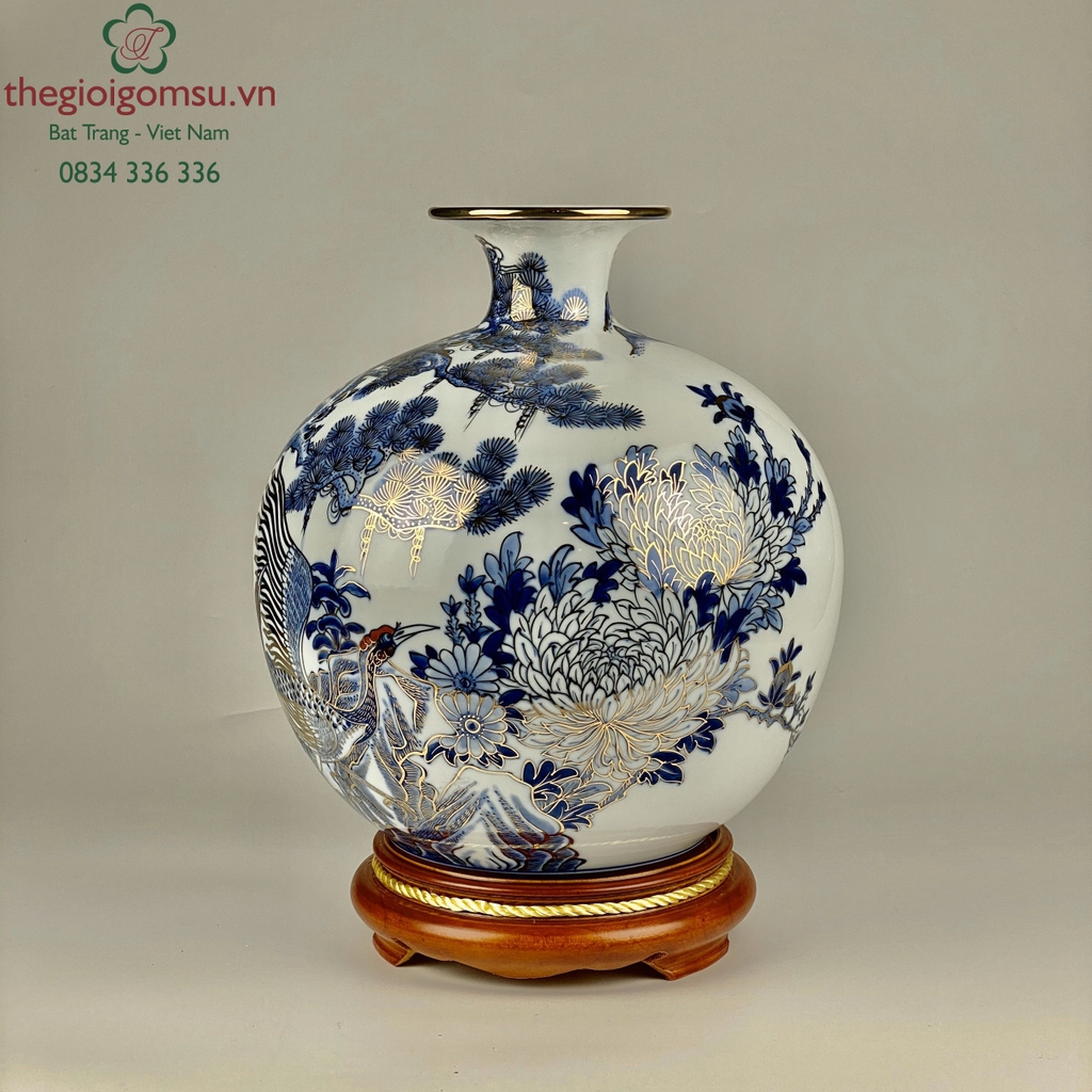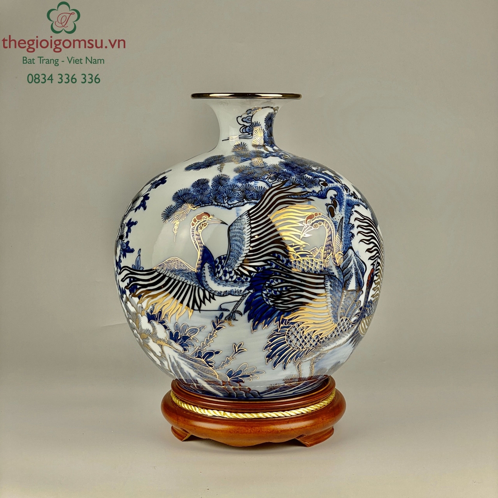 - Quy trình chế tác: Sản phẩm được chế tác thủ công 100% bởi bàn tay người nghệ nhân giỏi Bát Tràng. Trải qua lần nung đầu tiên ở nhiệt độ 1350 độ C và lần nung tiếp theo ở nhiệt độ 800 độ C để lớp vàng kim nóng chảy và bám chặt vào bề mặt sứ tạo nên vẻ đẹp sang quý, đẳng cấp.