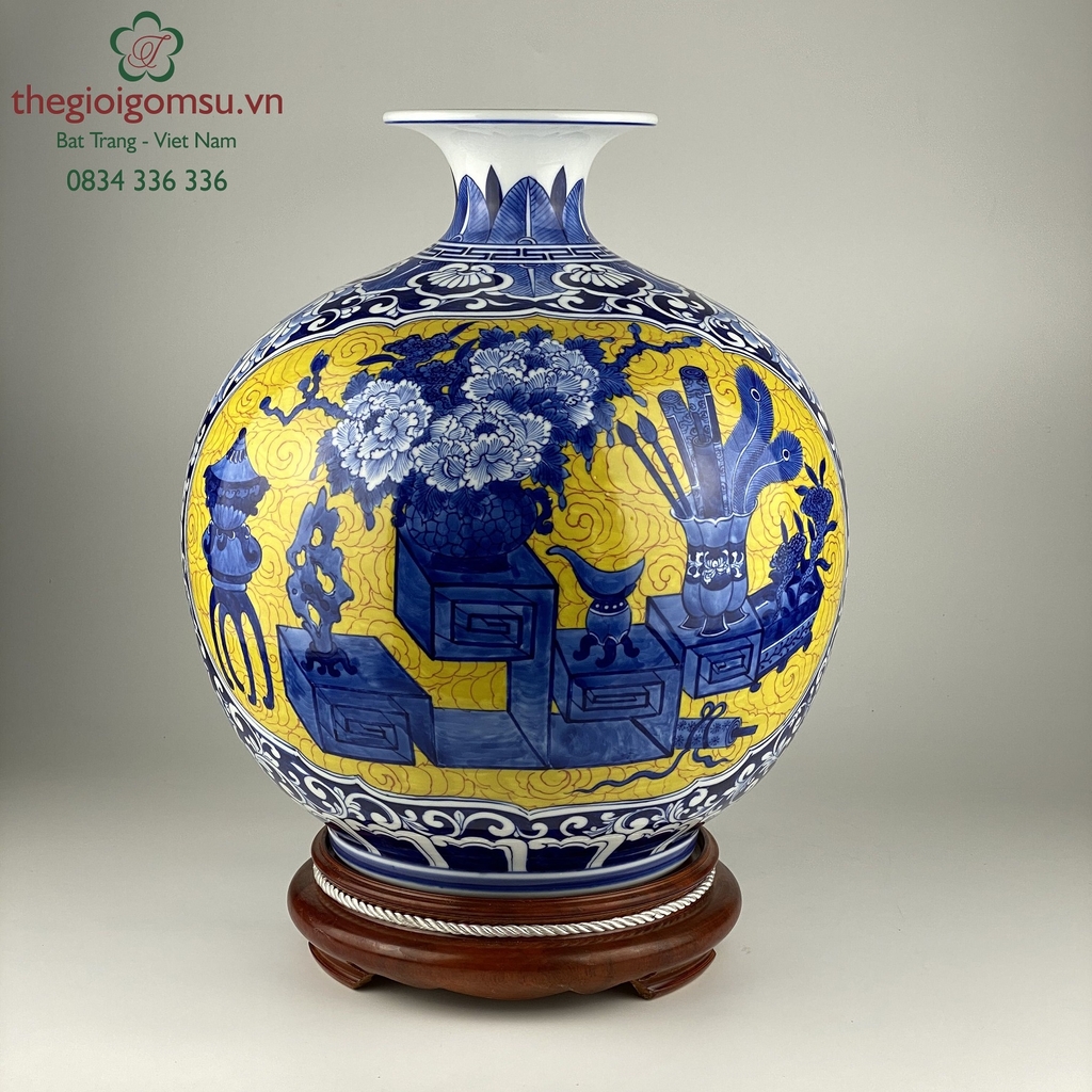 - Chất liệu: Bình hút tài lộc được tạo thành từ đất mẹ Đông Triều hòa cùng mạch nước thiêng sông Hồng cho cốt gốm dày dặn, cầm chắc tay, độ bền vượt trội.
