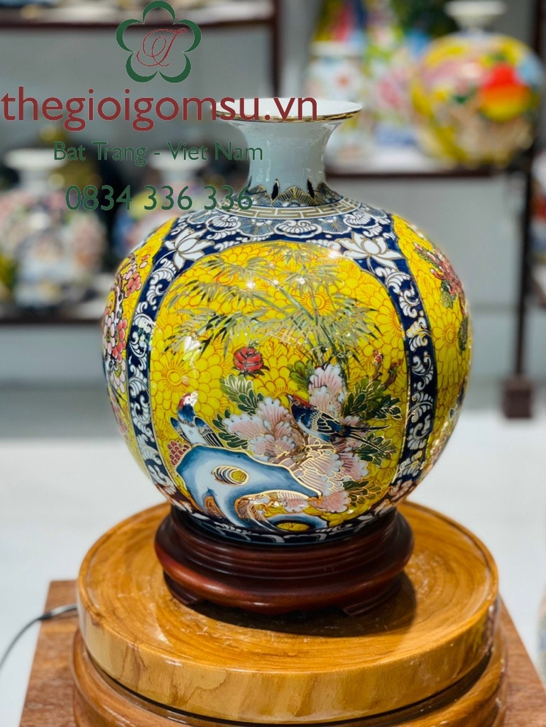 - Quy trình chế tác: Sản phẩm được chế tác thủ công 100% bởi bàn tay người nghệ nhân giỏi Bát Tràng. Trải qua lần nung đầu tiên ở nhiệt độ 1350 độ C và lần nung tiếp theo ở nhiệt độ 800 độ C để lớp vàng kim nóng chảy và bám chặt vào bề mặt sứ tạo nên vẻ đẹp sang quý, đẳng cấp.